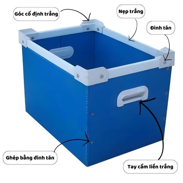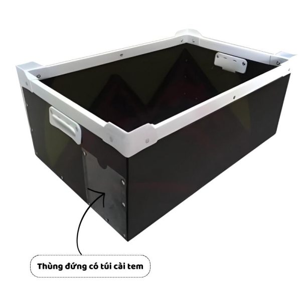 Đây là kiểu thùng không thể gập lại. Thùng không nắp thường dùng để đựng sản phẩm trong line sản xuất nội bộ, ít tiếp xúc với môi trường bụi bẩn bên ngoài nhà xưởng, hoặc đựng sản phẩm không đòi hỏi về chống bụi